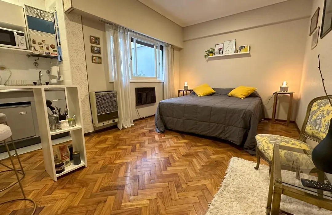 The apartment is located in Recoleta, known for Paris-style townhouses, lavish former palaces and posh boutiques, and Las Heras tube station is 400 metres away. The public square "Plaza Francia" is settled within close distance of the 25 m² property. The apartment is about a 10-minute drive from the famed presidential Casa Rosada Palace.